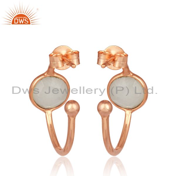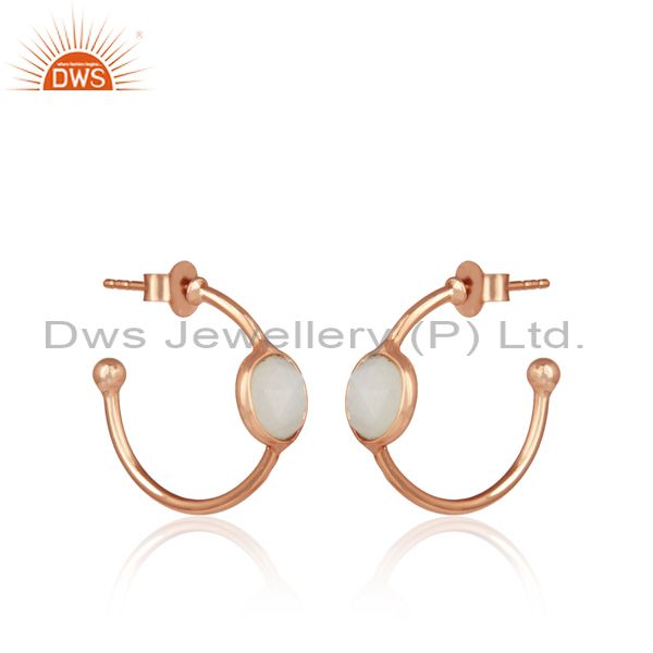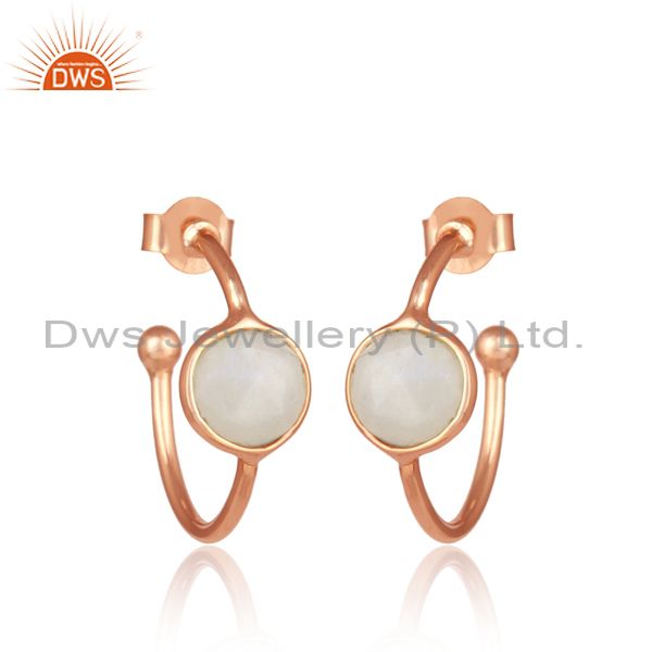 Rainbow Moon Stone Set Rose Plated Silver Open Hoop Earrings