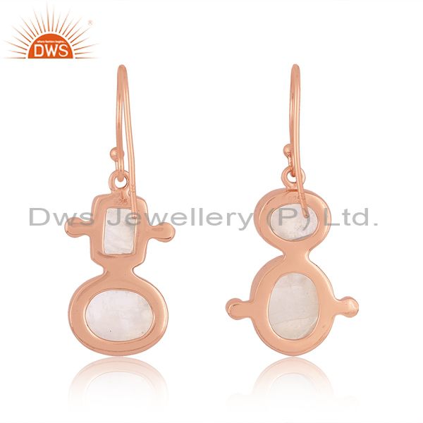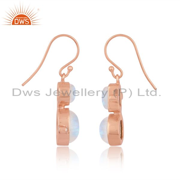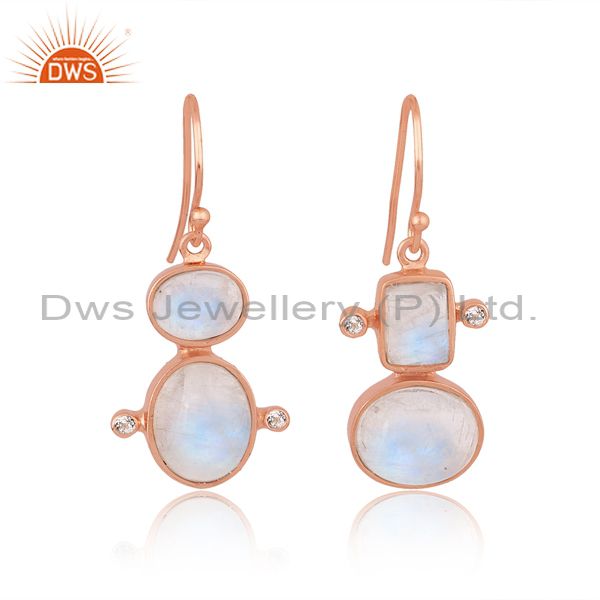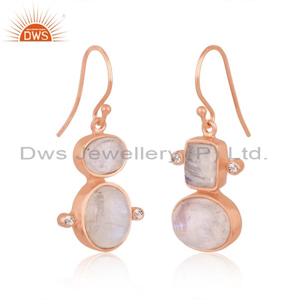 Rainbow Moon Stone, White Topaz Rose Gold On Silver Earrings