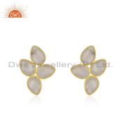 Rainbow Moonstone 14K Gold Plated Sterling Silver Stud Earrings Jewelry
