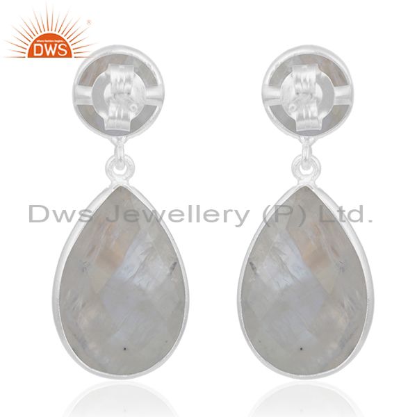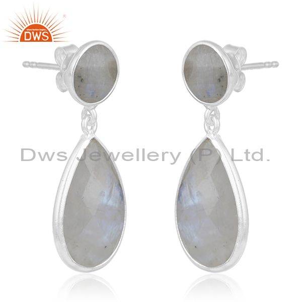 Rainbow Moonstone 925 Sterling Silver Bezel Set Gemstone Earring Manufacturer