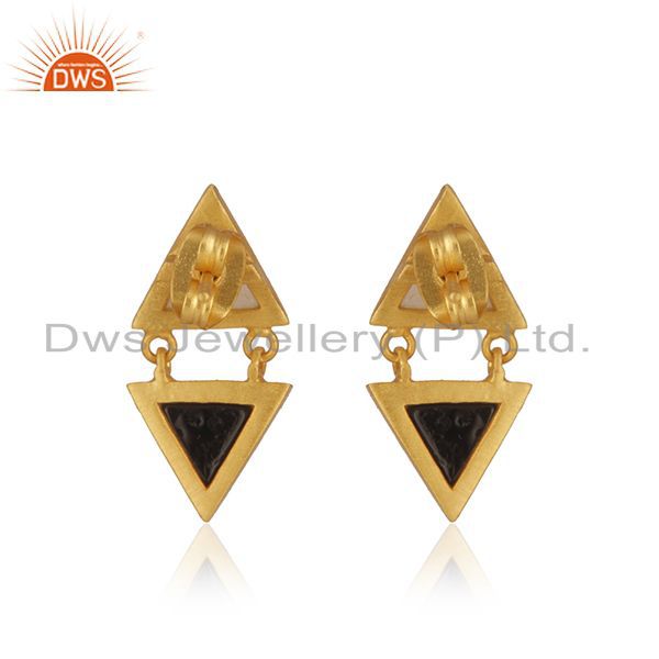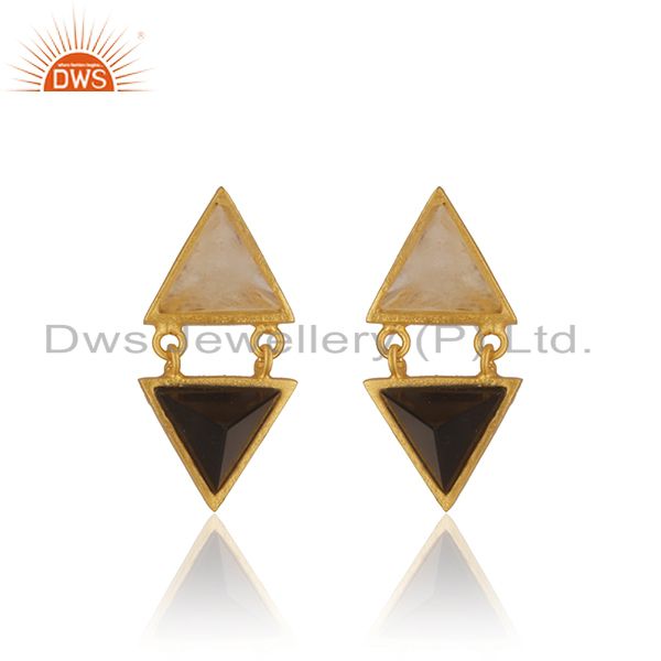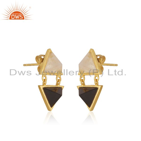 Rainbow Moonstone And Black Onyx Gemstone Brass Fashion Earrings
