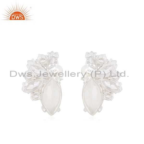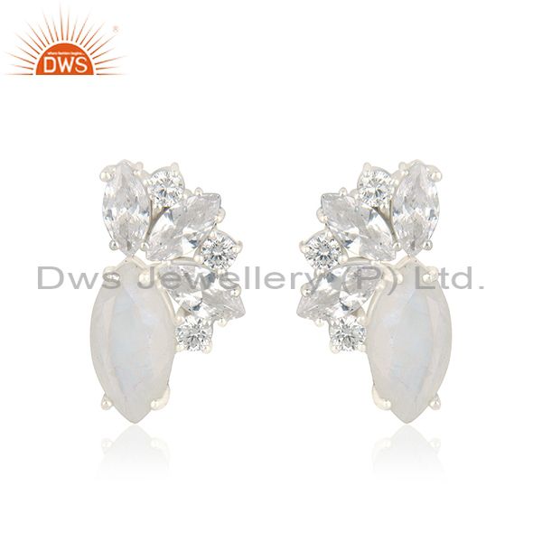 Rainbow Moonstone Fine Sterling 92.5 Silver Party Wear Earrings Manufacturer