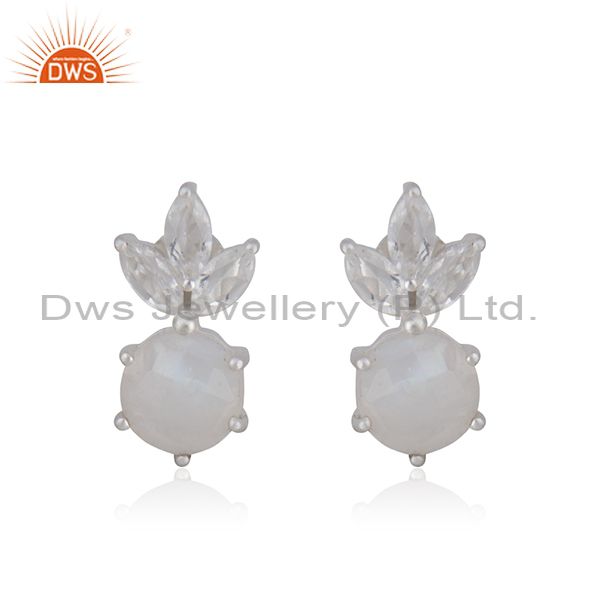 Rainbow Moonstone Fine Sterling Silver Stud Earring Manufacturer in Jaipur