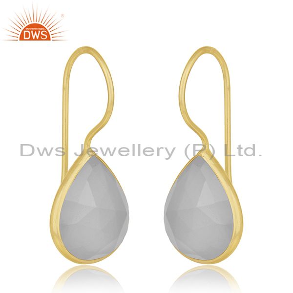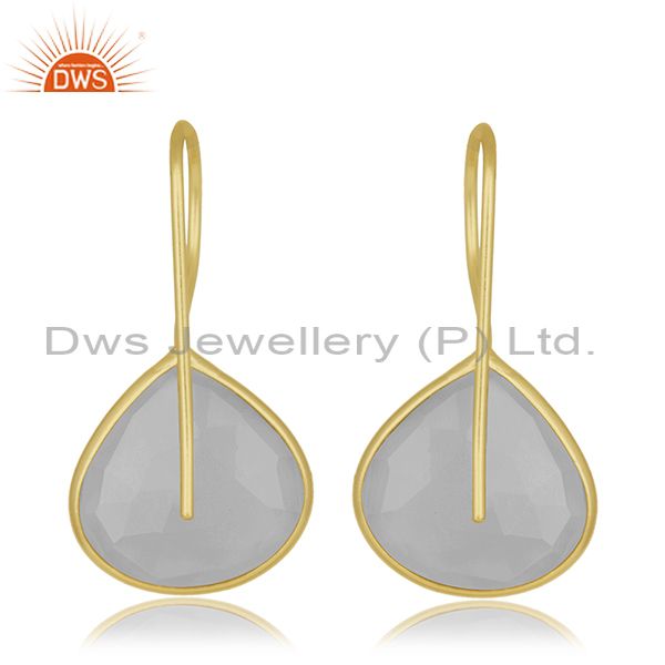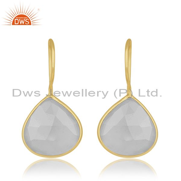 Rainbow Moonstone Gemstone Designer Gold Plated Silver Earrings