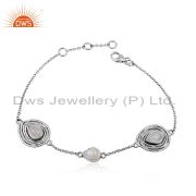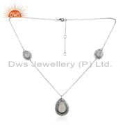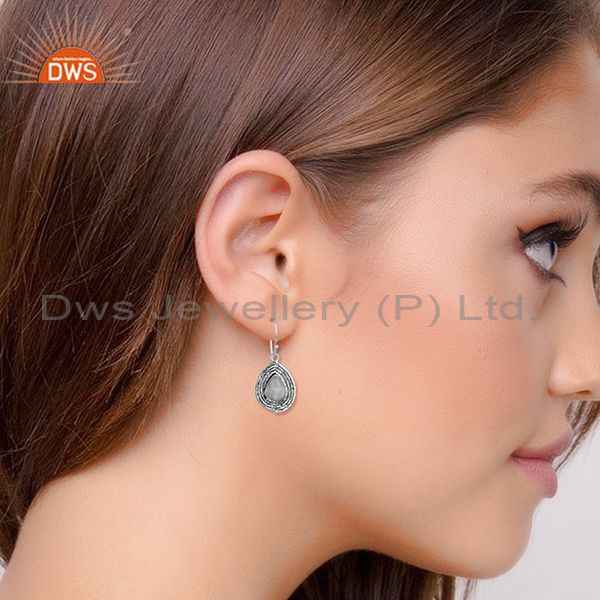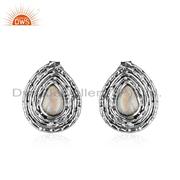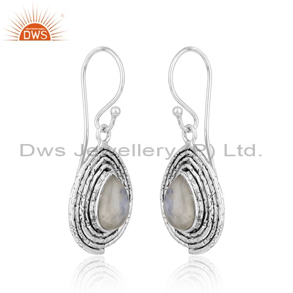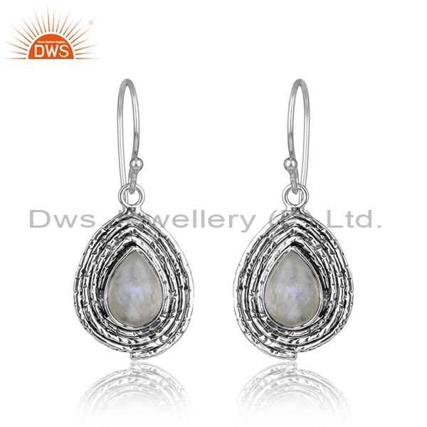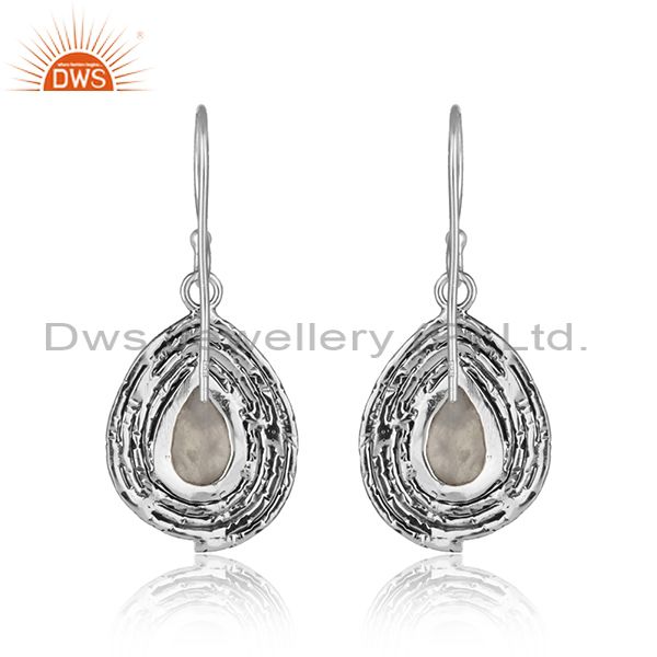 Rainbow Moonstone Gemstone Designer Oxidized 925 Silver Earrings