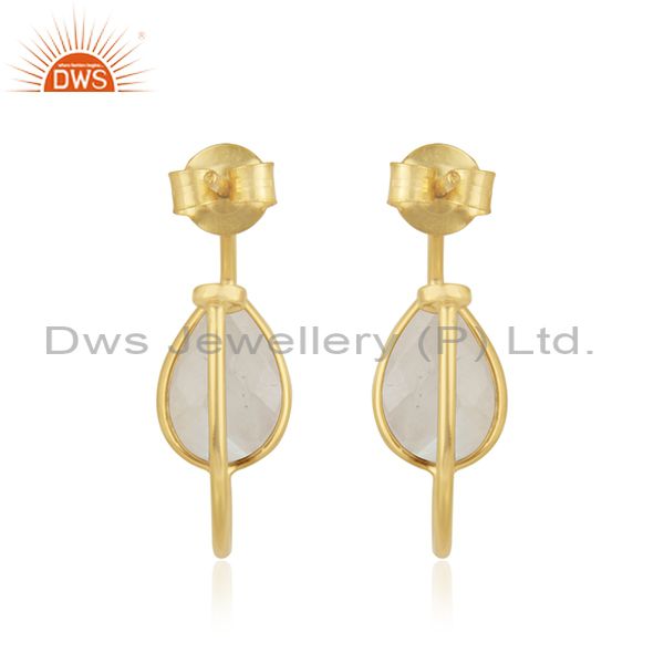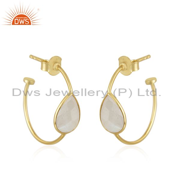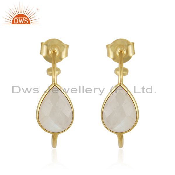 Rainbow Moonstone Gemstone Gold Plated 925 Silver Hoop Earring Jewelry