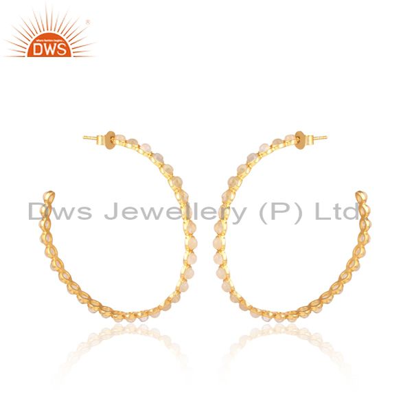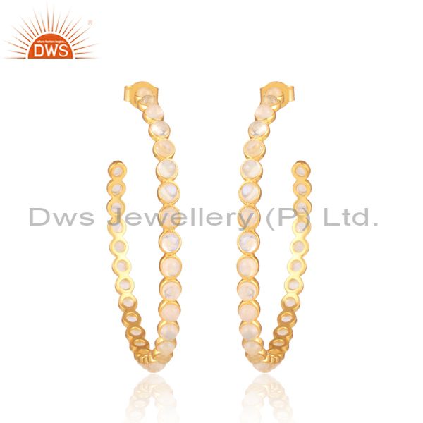 Rainbow Moonstone Gemstone Silver Gold Plated Designer Hoop Earrings