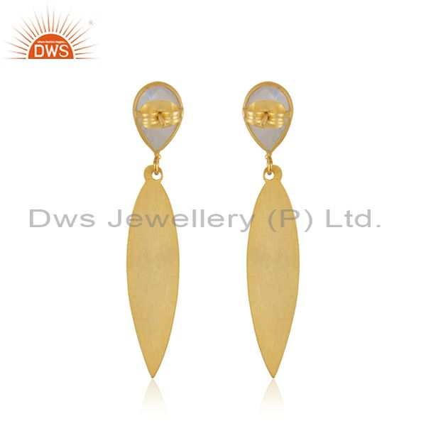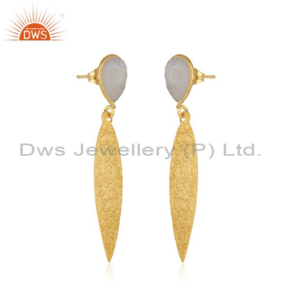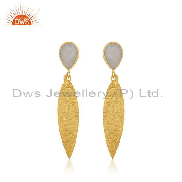 Rainbow Moonstone Gemstone Textured Gold Plated Brass Fashion Earrings Jewelry