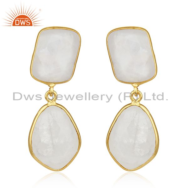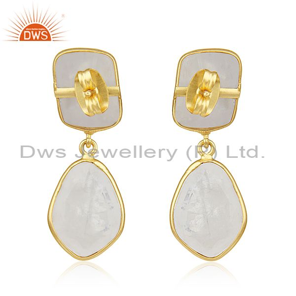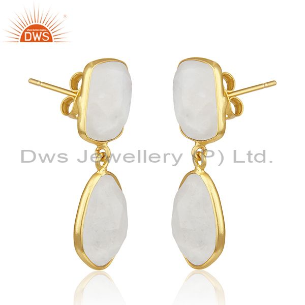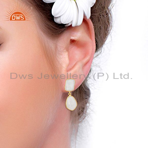 Rainbow Moonstone Gold Plated Brass Fashion Handmade Earrings Manufacturer India