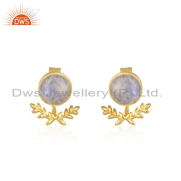 Rainbow Moonstone Gold Plated Brass Fashion Stud Earring Manufacturer