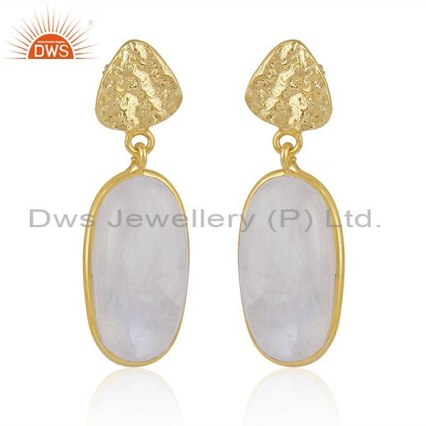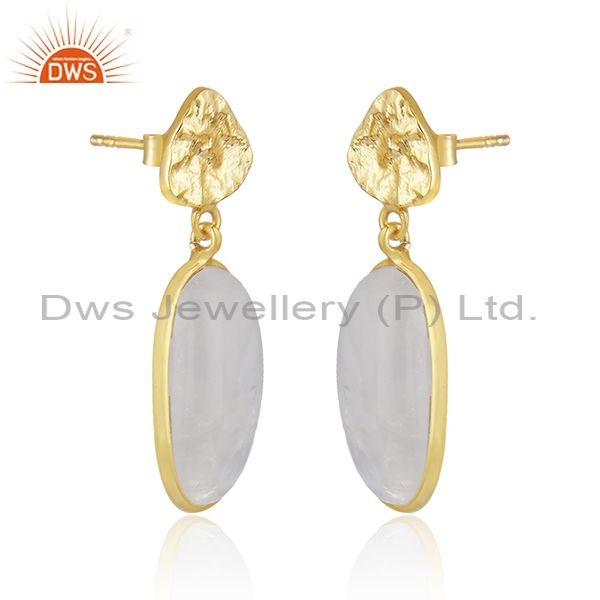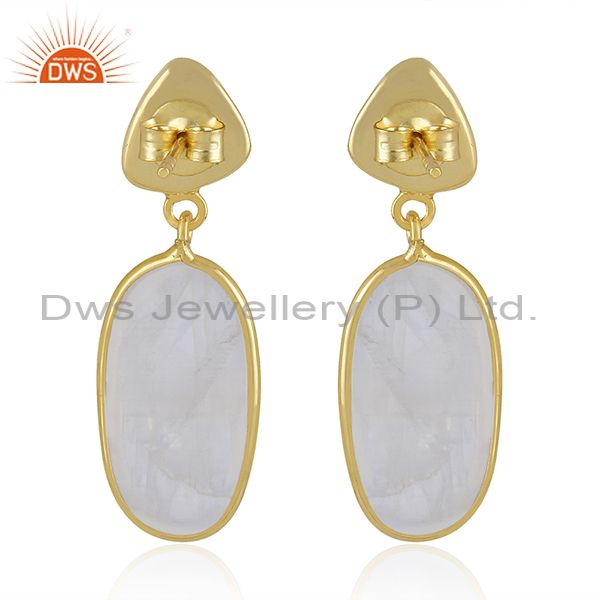 Rainbow Moonstone Handmade Gold Plated 925 Sterling Silver Earrings