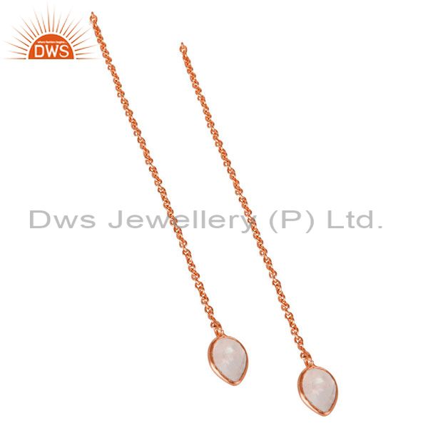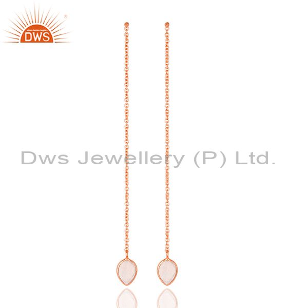 Rainbow Moonstone Rose Gold Plated Brass Chain Earrings Supplier Jaipur
