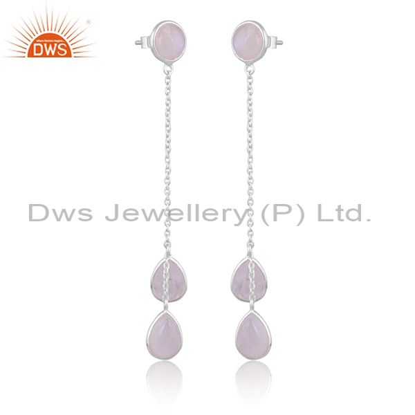 Rainbow Moonstone Silver Threader Silver Chain Earrings