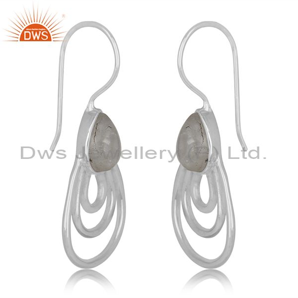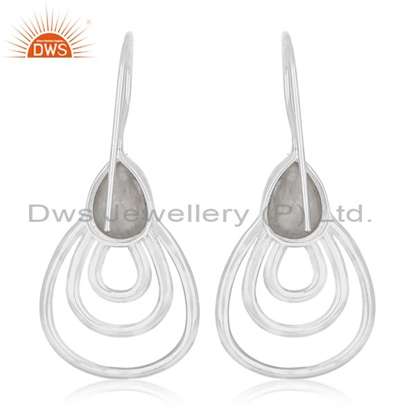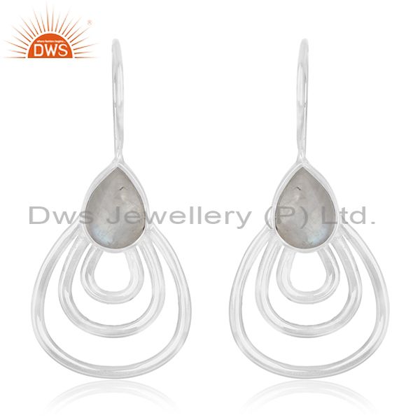 Rainbow Moonstone Sterling Silver White Rhodium Plated Earrings Wholesale India