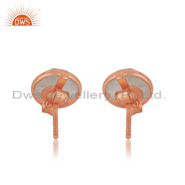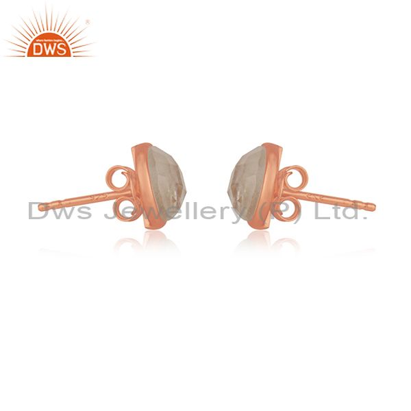 Rainbow Moonstone Studs Earrings Made In 18K Rose Gold Over 925 Sterling Silver
