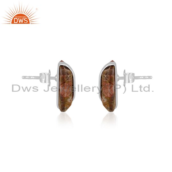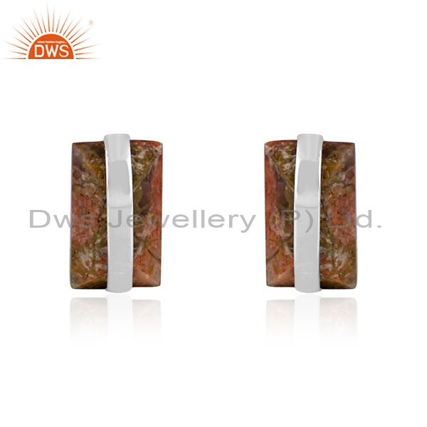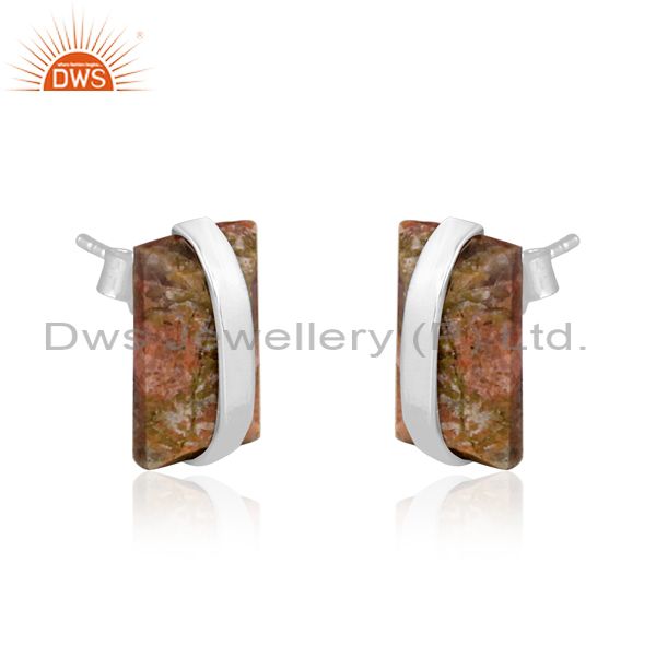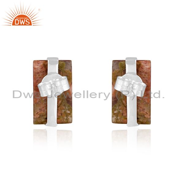 Rectangular Unakite Set Fine 925 Silver Statement Earrings