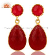 Red Aventurine Gemstone Gold Plated 925 Silver Dangle Earring Supplier