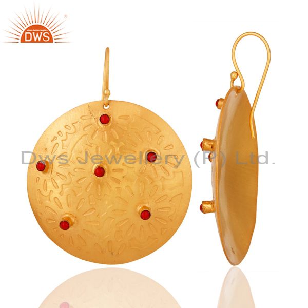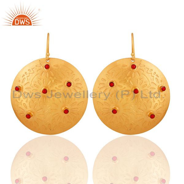 Red Coral Dangle 14K Yellow Gold Plated Brass Earrings Fashion Jewelry