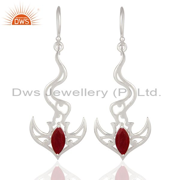 Red Corundum Ruby Solid Sterling Silver Designer Fine Gemstone Earrings