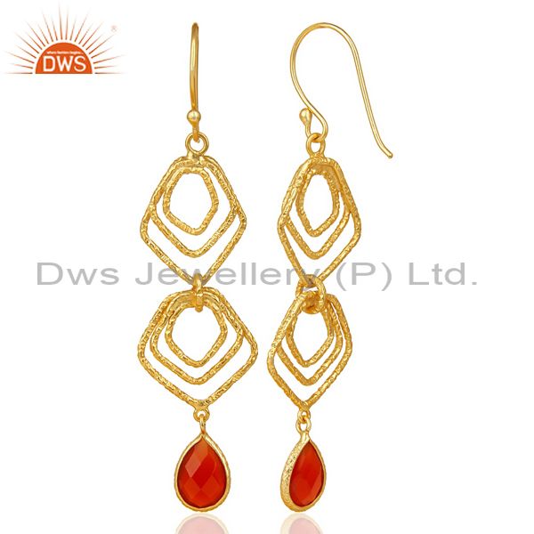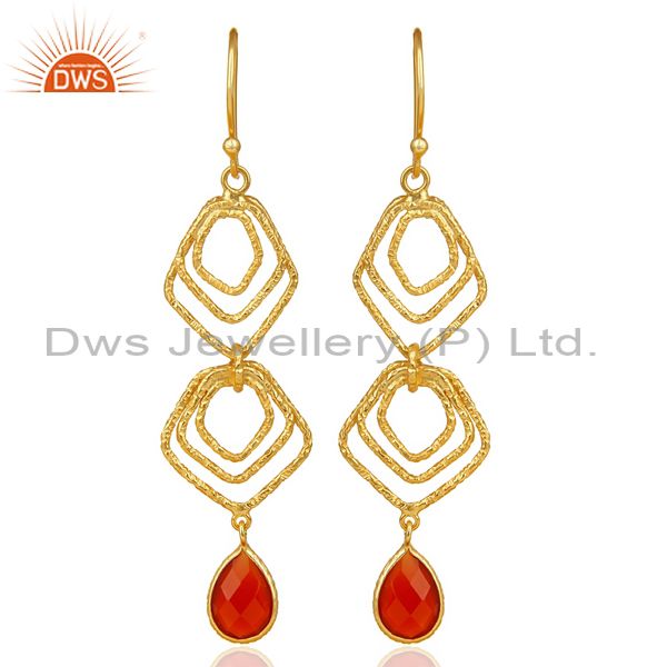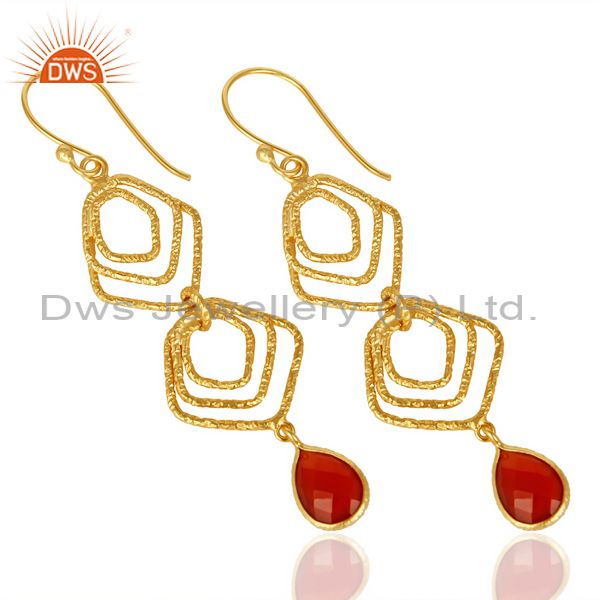Red Onyx Asymmetrical Dangle 14K Gold Plated 92.5 Sterling Silver Earring