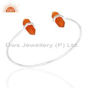 Red Onyx Cz Studded Pencil Post 92.5 Sterling Silver Wholesale Earring