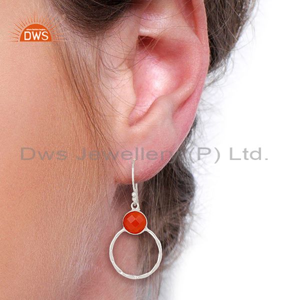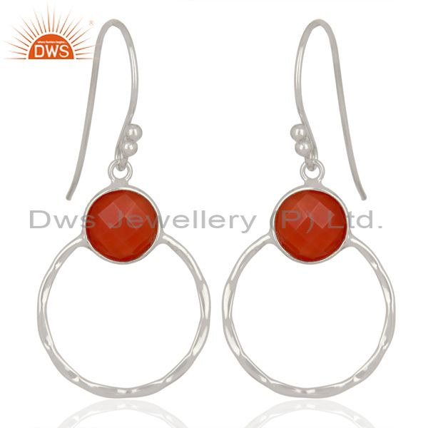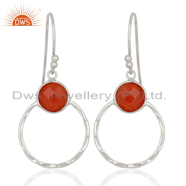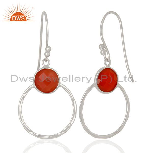 Red Onyx Double Circle 925 Sterling Silver White Rhodium Plated Earring