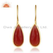 Red Onyx Drop Bezel Set Gold Plated 92.5 Sterling Silver Earring