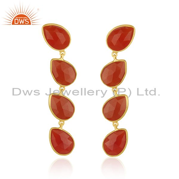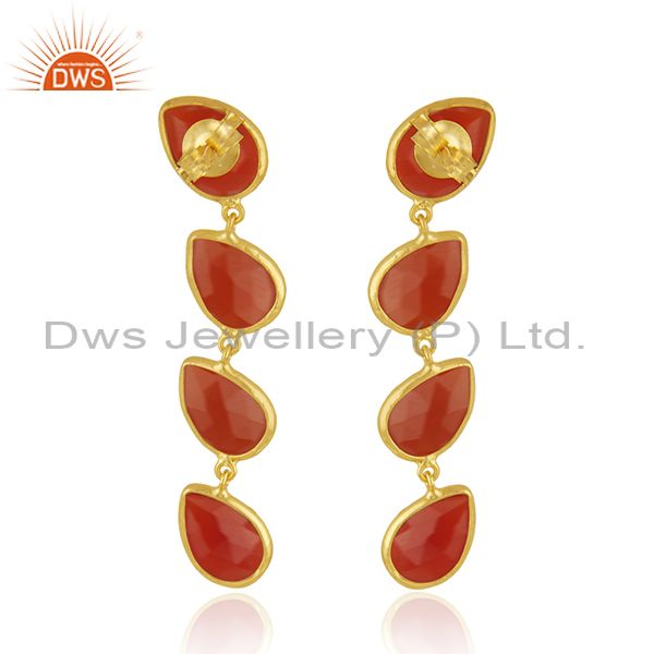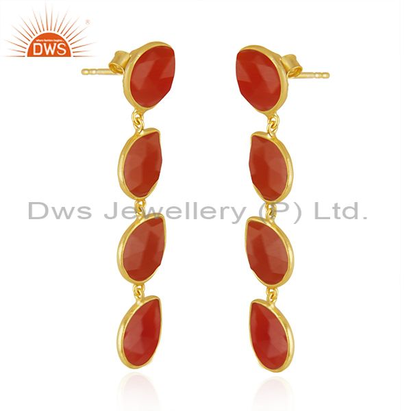 Red Onyx Gemstone 18K Gold Plated Silver Earring Jewelry Manufacturer