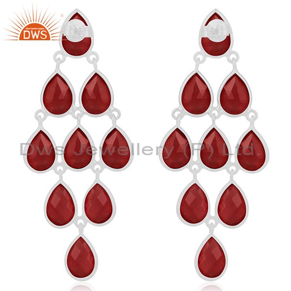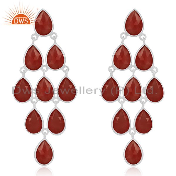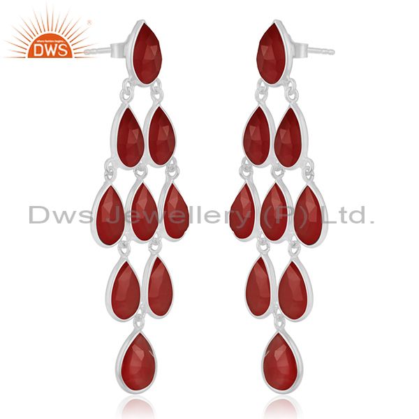 Red Onyx Gemstone 925 Sterling Fine Silver Dangle Earrings Manufacturer India