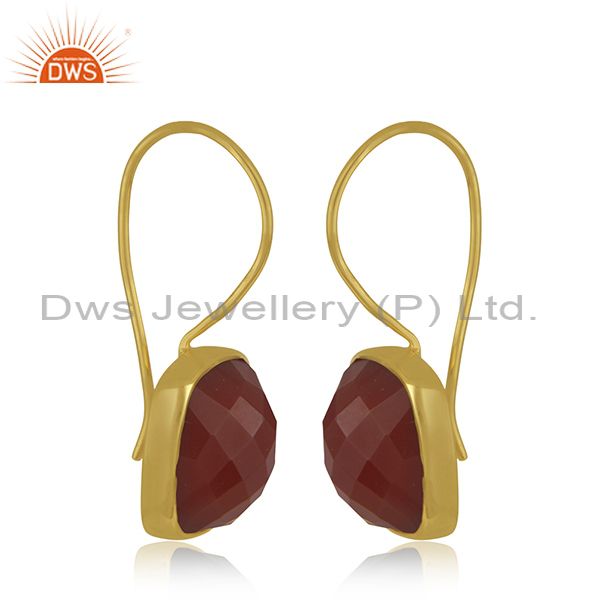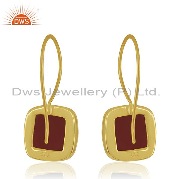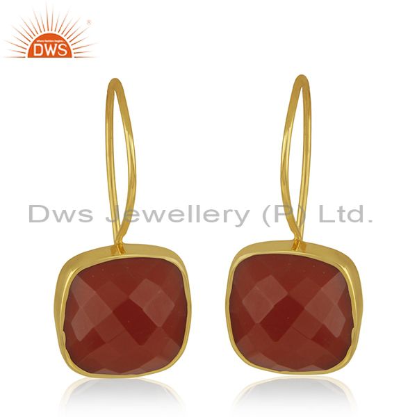 Red Onyx Gemstone 925 Sterling Silver Gold Plated Drop Earrings Manufacturer