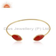 Red Onyx Gemstone Designer 18K Gold Plated Silver Chain Earrings