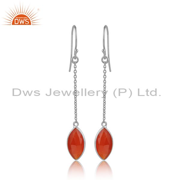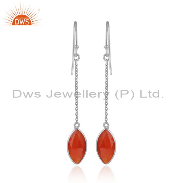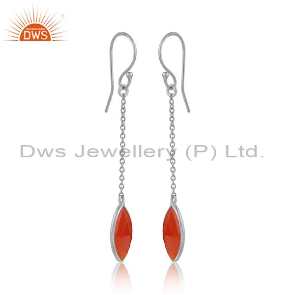 Red Onyx Gemstone Designer Fine Sterling Silver Girls Earrings