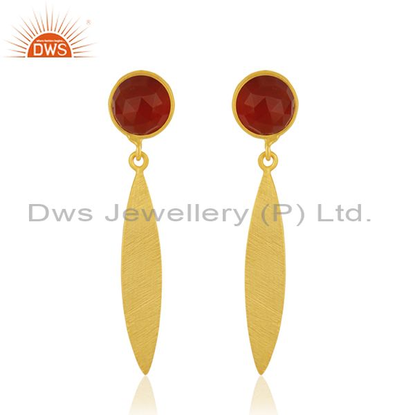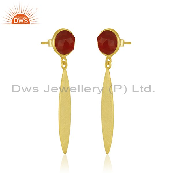 Red Onyx Gemstone Gold Plated 925 Silver Handmade Earrings Jewelry Manufacturer