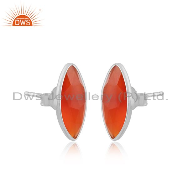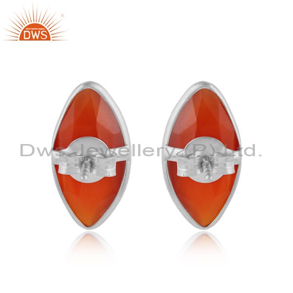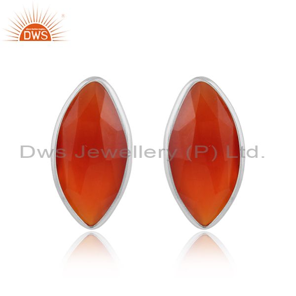 Red Onyx Gemstone New Sterling Fine Silver Designer Stud Earring