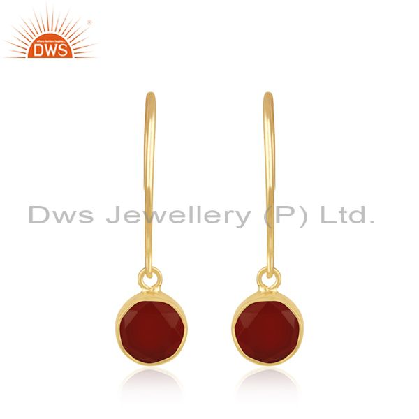 Red Onyx Gemstone Sterling Silver Gold Plated Simple Earring Manufacturer Jaipur