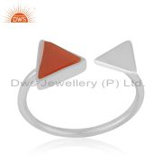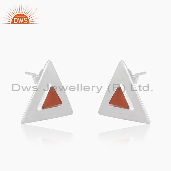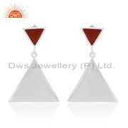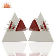 Red Onyx Gemstone Sterling Silver Triangle Stud Earrings For Girls Jewelry