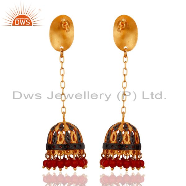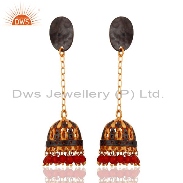 Red Onyx Gold Plated Jhumki Earrings For Womens Indian Bollywood Fashion Jewelry