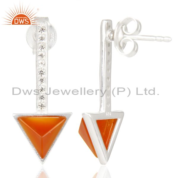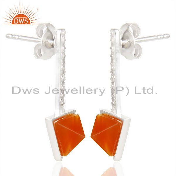 Red Onyx Triangle Cut Post 92.5 Sterling Silver Earring,Stud Long Earring