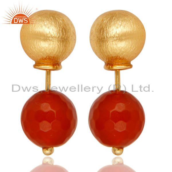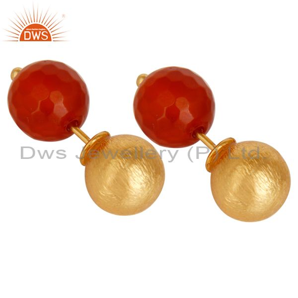 Red Onyx Two Way Stud Ball Stud Post 14 K Gold Plated Fashion Giift Earring