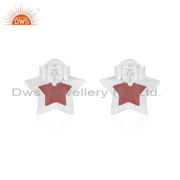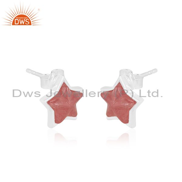 Rhodochrosite set fine sterling silver star shaped earrings