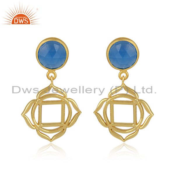 Root Chakra Earring in Yellow Gold on Silver with Blue Chalcedony