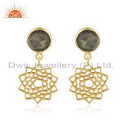 Root Chakra Earring in Yellow Gold on Silver with Labradorite