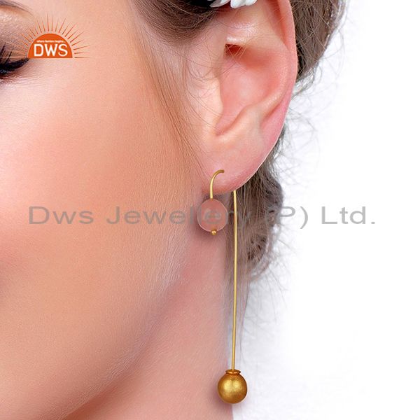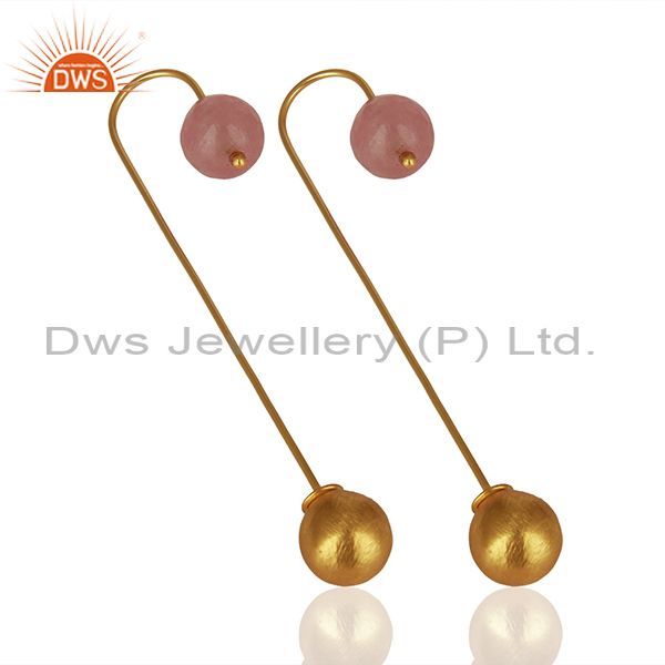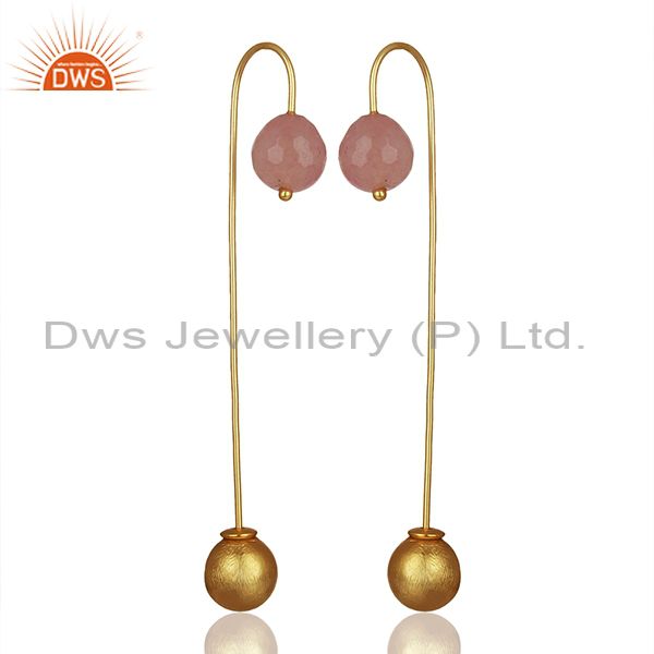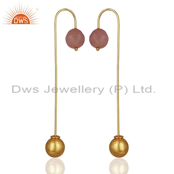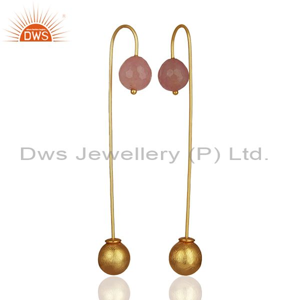 Rose Chalcedont Gemstone Ball And Brass Fashion Ball Dangle Earrings