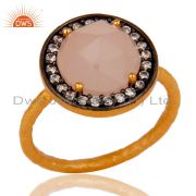 Rose Chalcedony & Cubic Zirconia 18K Gold Plated Sterling Silver Dangle Earrings