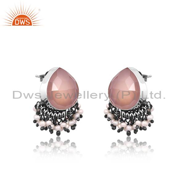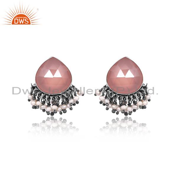 Rose Chalcedony & Pearl Bead Earrings: Elegant & Timeless