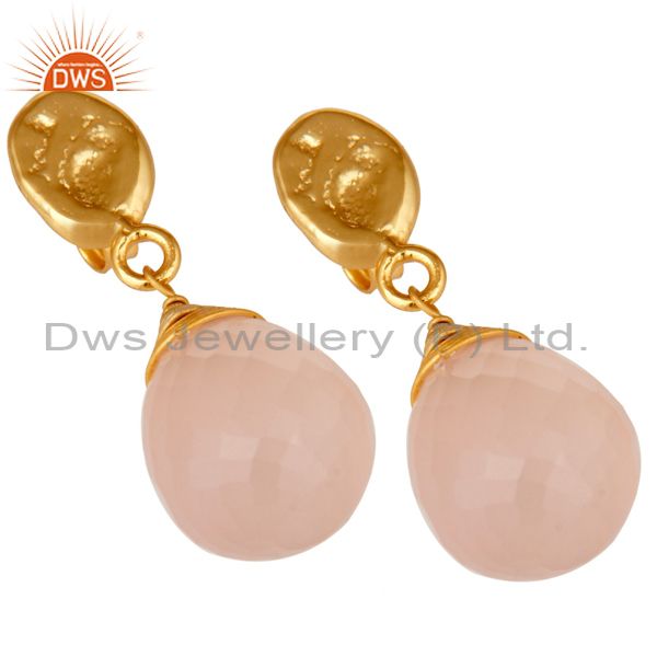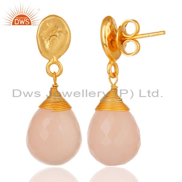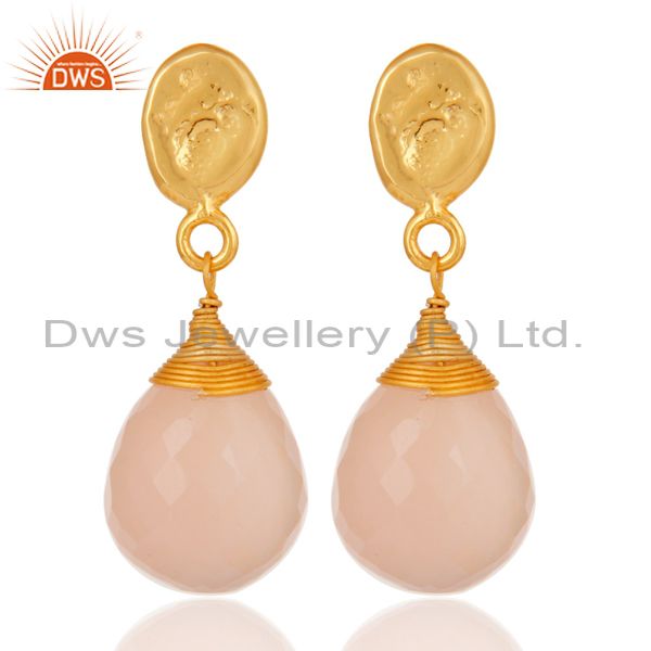 Rose Chalcedony 18K Gold Plated Sterling Silver Drop Earring