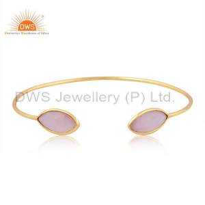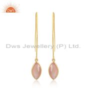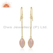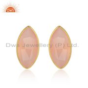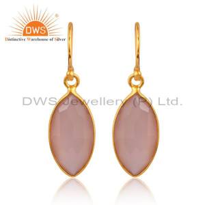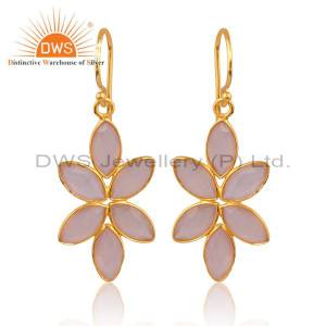 Rose Chalcedony Flower Designer Silver Gold Plated Earrings