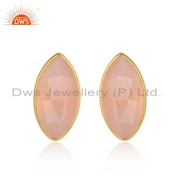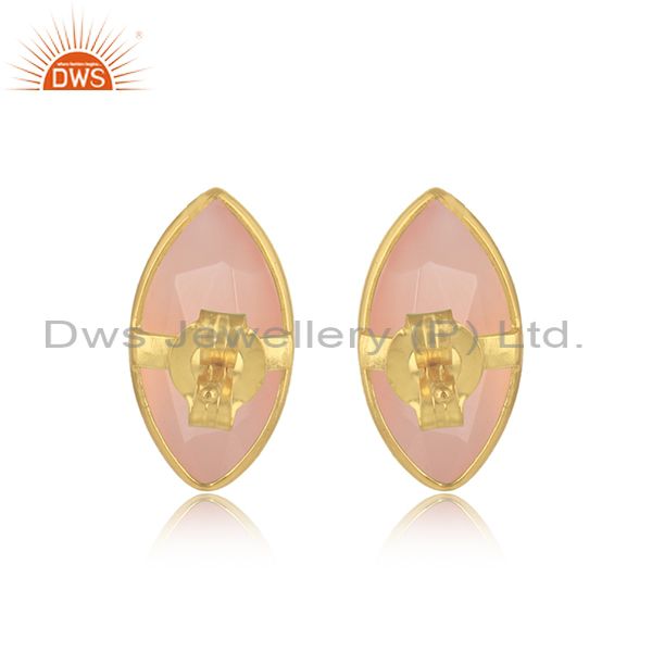 Rose Chalcedony Gemstone 18K Gold Plated Silver Stud Earrings