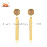 Rose Chalcedony Gemstone 925 Silver GOld Plated Earrings Manufacturer India