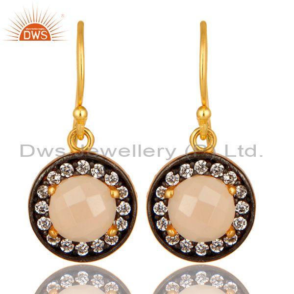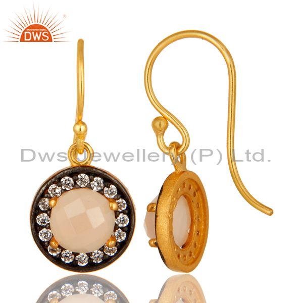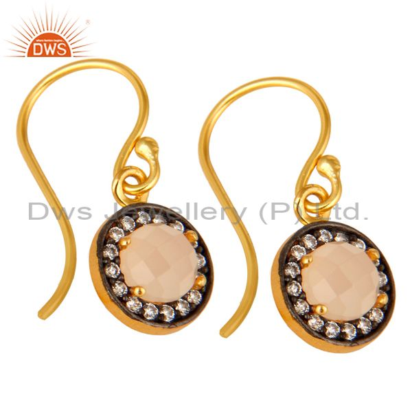 Rose Chalcedony Gemstone And Cz Sterling Silver Dangle Earrings With Gold Plated